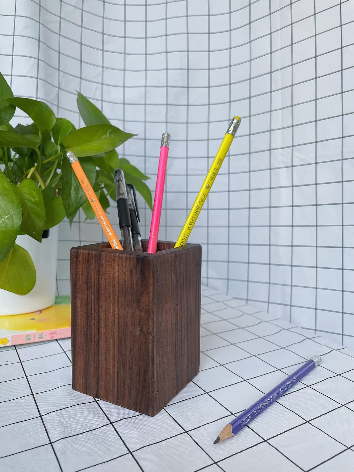 Black Walnut Wood Quality Pen Holder Creative Solid Wood Containing Box Office Concise Desktop Pendulum modern minimalist student use