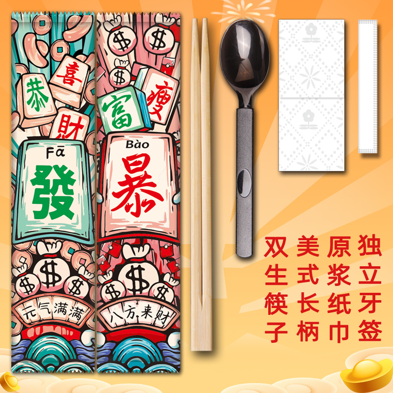 Disposable chopsticks four-piece set takeaway packaged tableware custom high-end restaurant commercial four-in-one set full box
