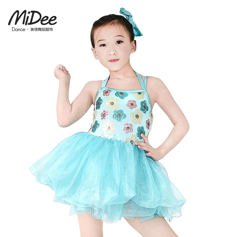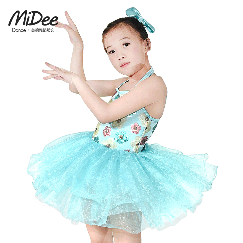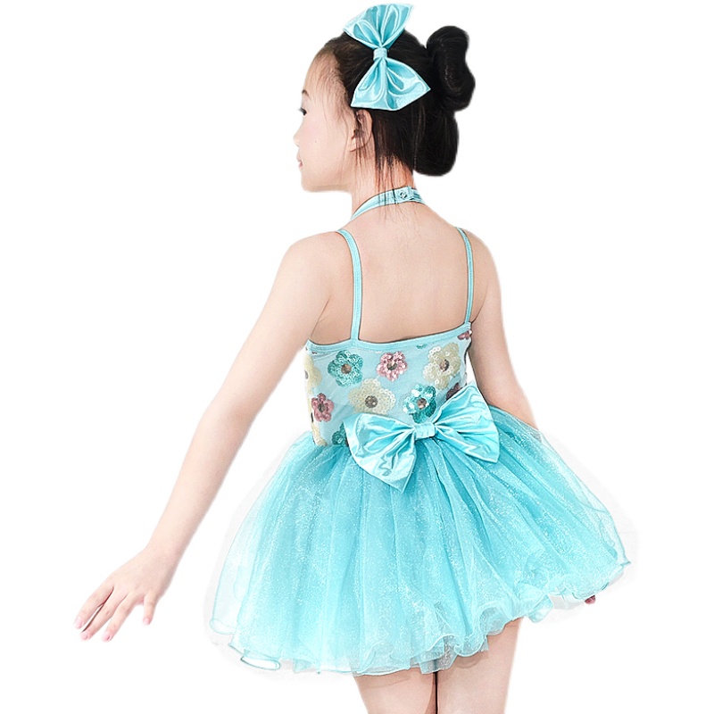 Virtue performance costumes girls summer fresh mint green sequined tutu skirt one-piece modern ballet performance children
