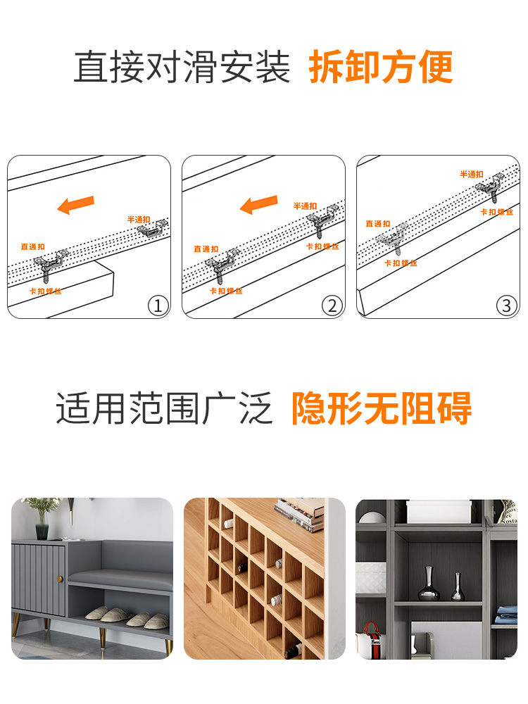 Wardrobe invisible two-in-one connection piece concealed screw buckle furniture through assembly piece without hole to install primary-secondary sliding buckle