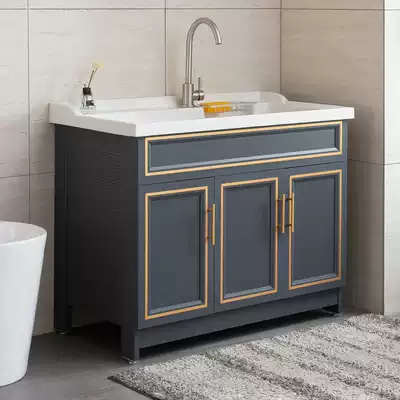 Space aluminum washing wardrobe balcony laundry pool with washboard quartz stone basin sink Integrated Household combination floor standing