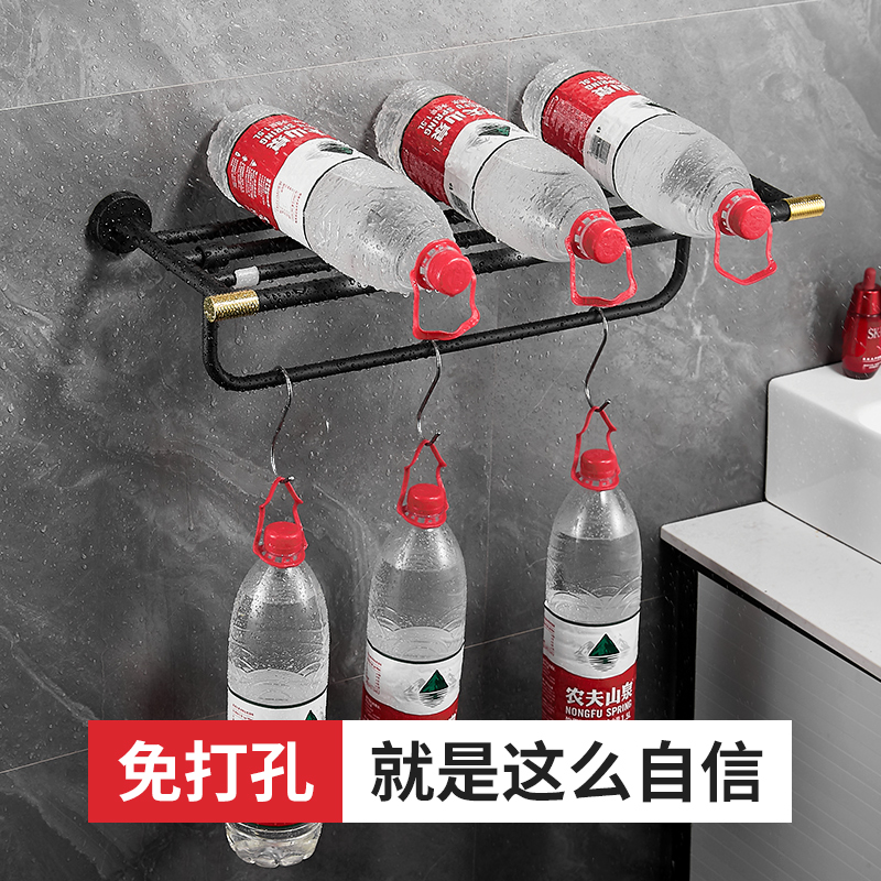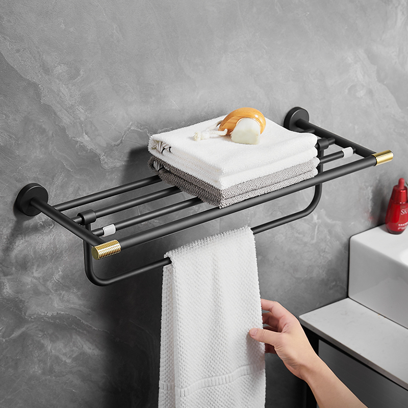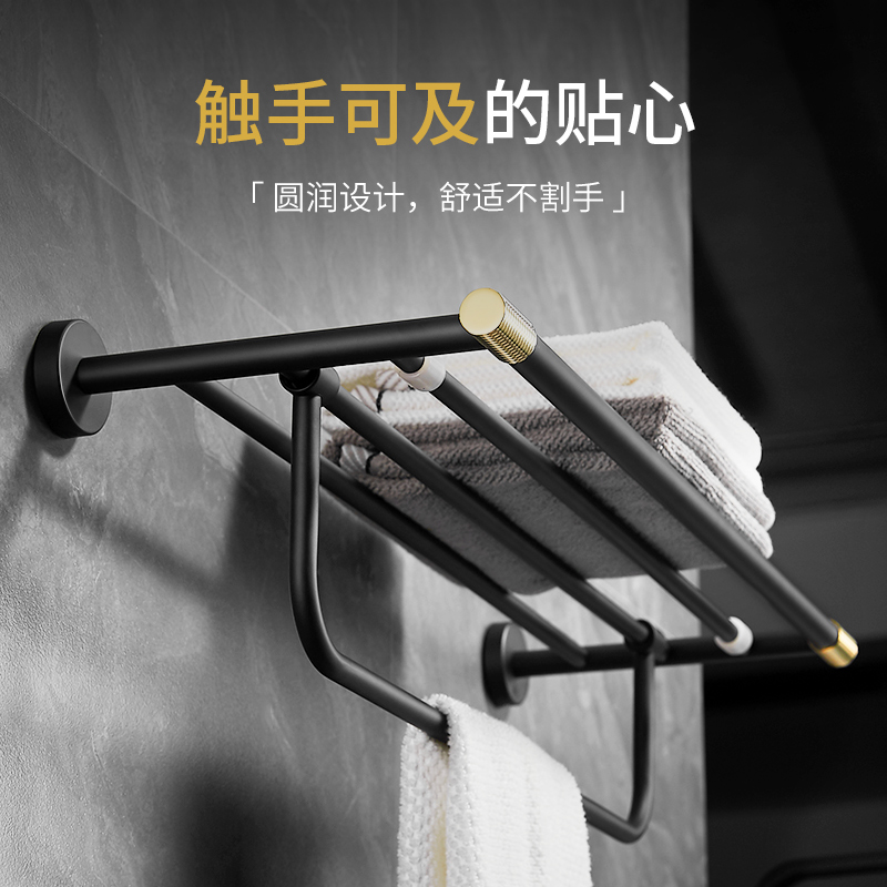 Free Punching Hair Towel Rack Makeup Room Shelf Wall-mounted Bathroom bath towels Toilet Pendant Shelf Light Lavish Black Gold