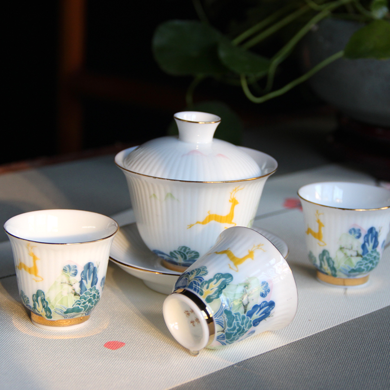 Sheep Fat Jade Circle Golden Beauty Tea tea Grease Jade Circle Golden Dream Deer Tea Set Goat Fat Jade Circle Gold Tea Set Goat Fat Jade Circle Gold Cover Bowl Goat Fat Jade Circle Gold Tea Cup