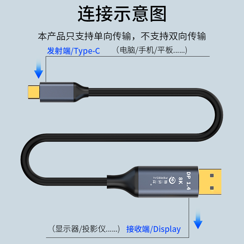 Type-c to DP line 1 4 version 8K suitable for Huawei Mate40ProP40 mobile phone connected to DP display HD line