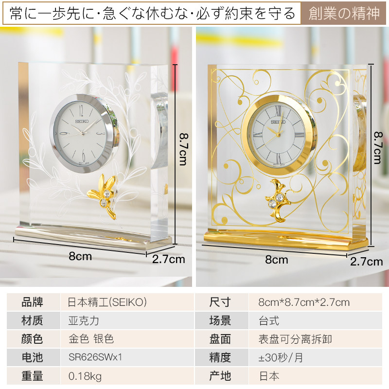 SEIKO Japanese Seiko table clock quartz watch movement exquisite square desktop decoration acrylic shell table clock
