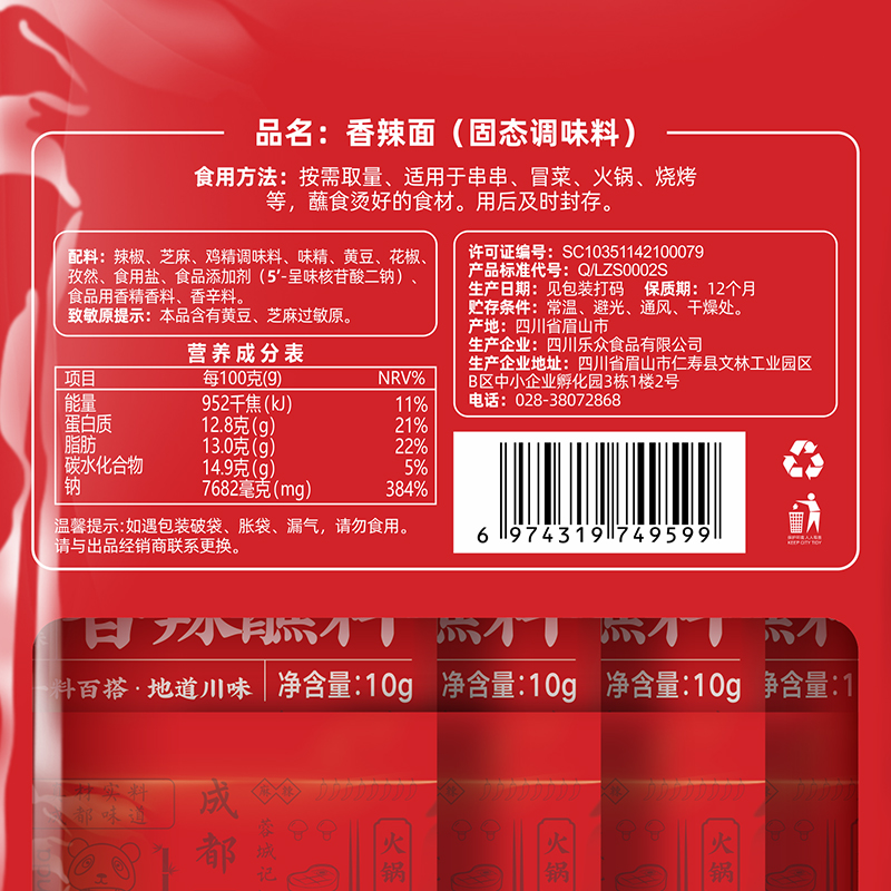Sichuan Chengdu Strings of Hot Pot Dry Sauces With Hot Pepper Noodles Barbecue Sprinkled Hot pepper Spiced Peppery Meat 500g Commercial-Taobao
