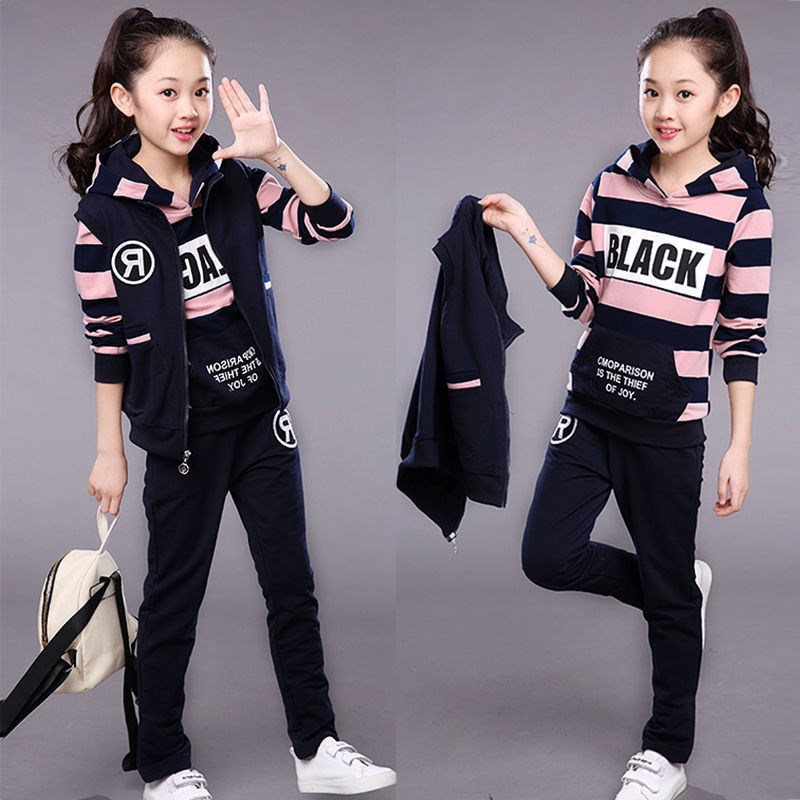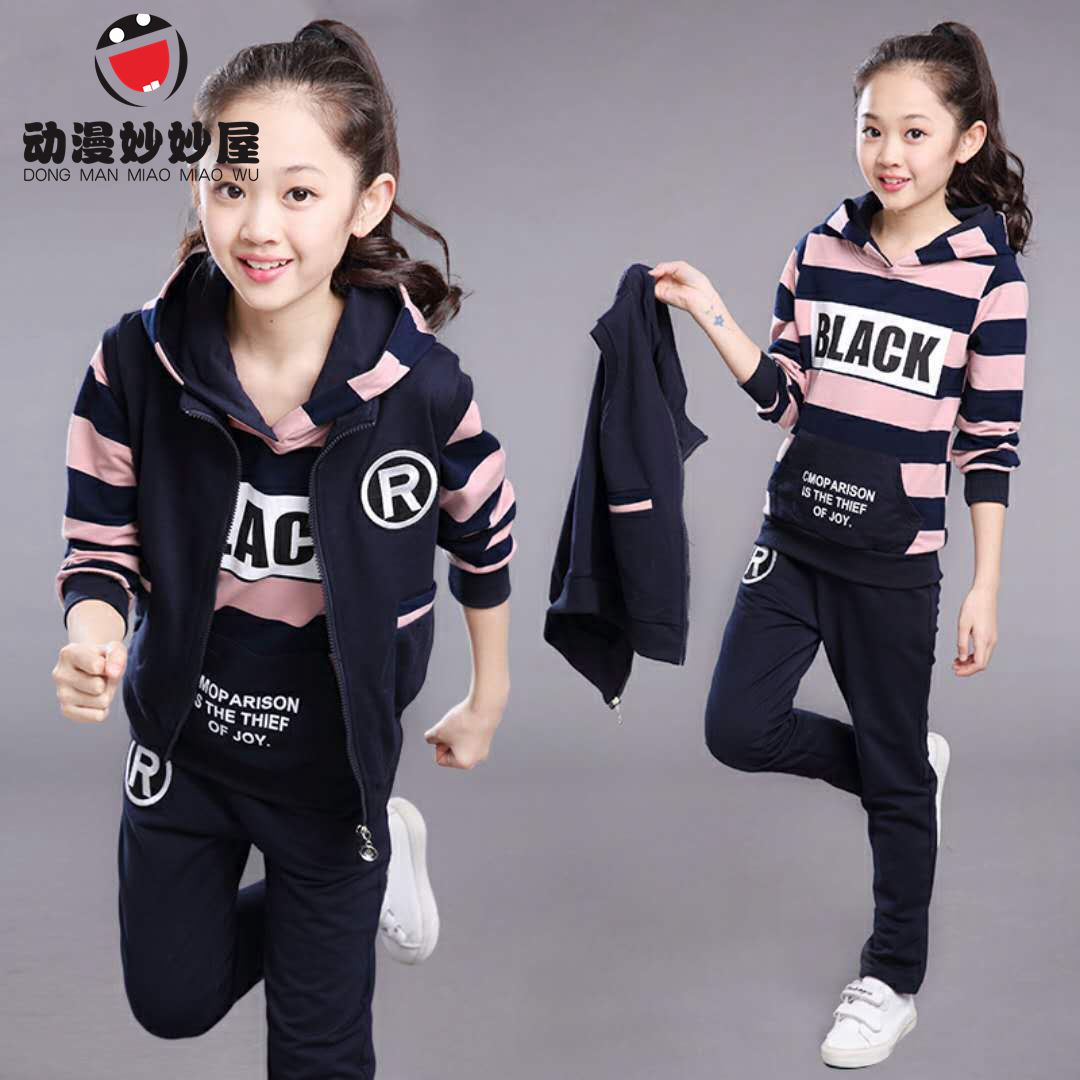 Girl Nets Red Sportswear Suit Spring Dress 2022 New Great Boy Children Foreign Pie Trendy Casual Spring Autumn Three Sets