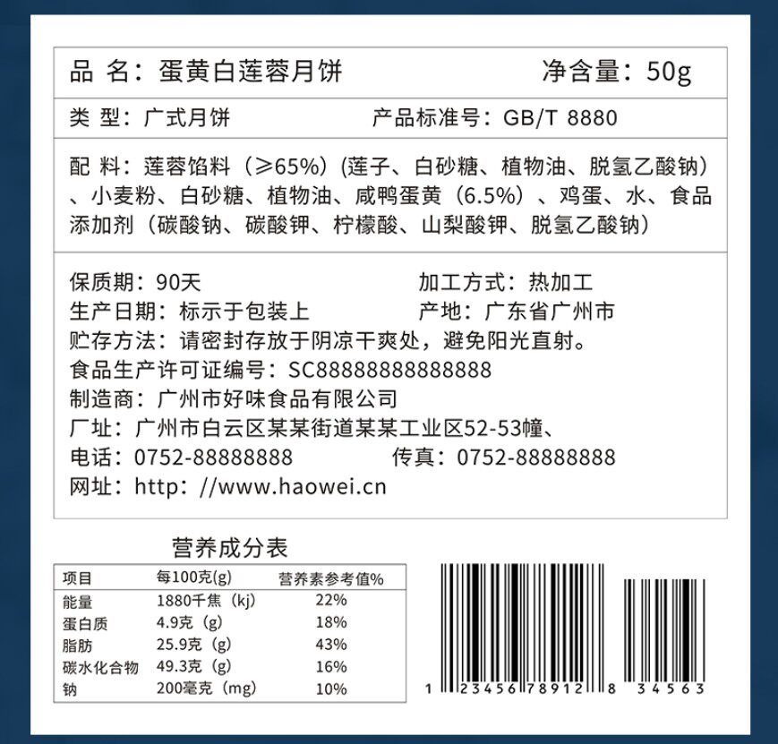 Moon cake cake baking products certificate label ingredients ingredients table bulk production date shelf-life