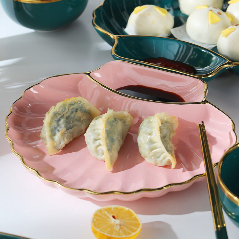 Light luxury Phnom Penh ceramic dumpling plate with vinegar plate home Nordic creative tableware dumpling plate divided plate breakfast plate