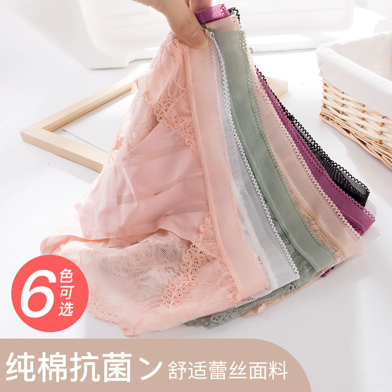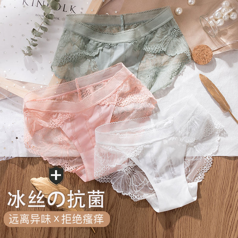 Lace panties women's mid-waist seamless cotton antibacterial sexy temptation Japanese girls cotton crotch breathable shorts head