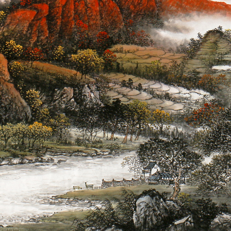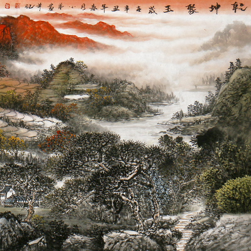 1 8 meters (Member of Provincial Artists Association) Long Xiaodi "Qian Kun Gathering Jade" hand-painted landscape paintings by famous masters