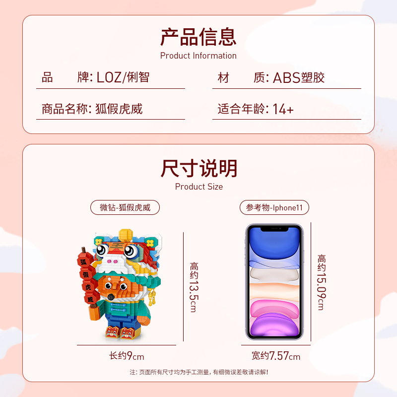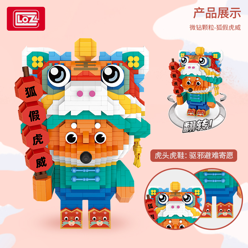 LOZ Lizhi tiny particle building blocks assembled toys children's educational cartoon doll model ornaments fox fake tiger power