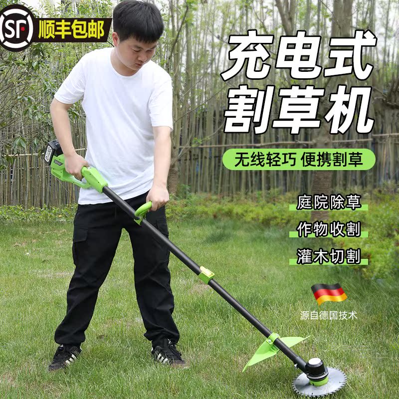 Backpack portable lawn mower lithium battery small household multi-function weeding artifact lawn auxiliary wheel lawn mower