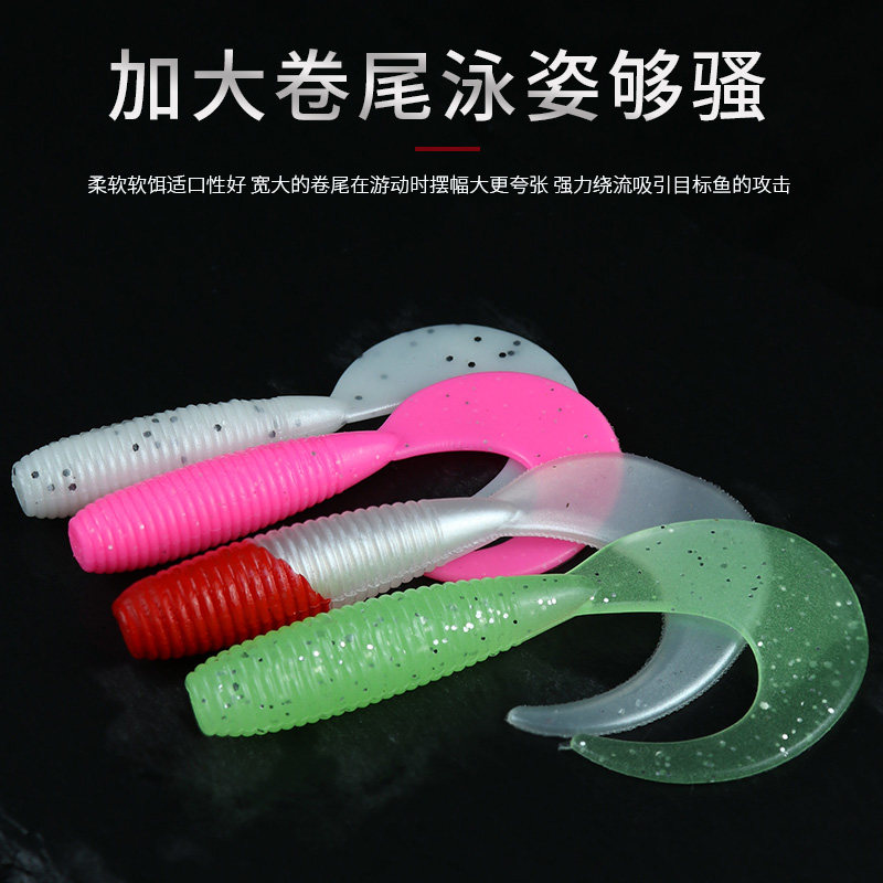 Kung fu fisherman's new road bait tail bait long-dropped soft worm lead hook fake bait single-tail bass pocket