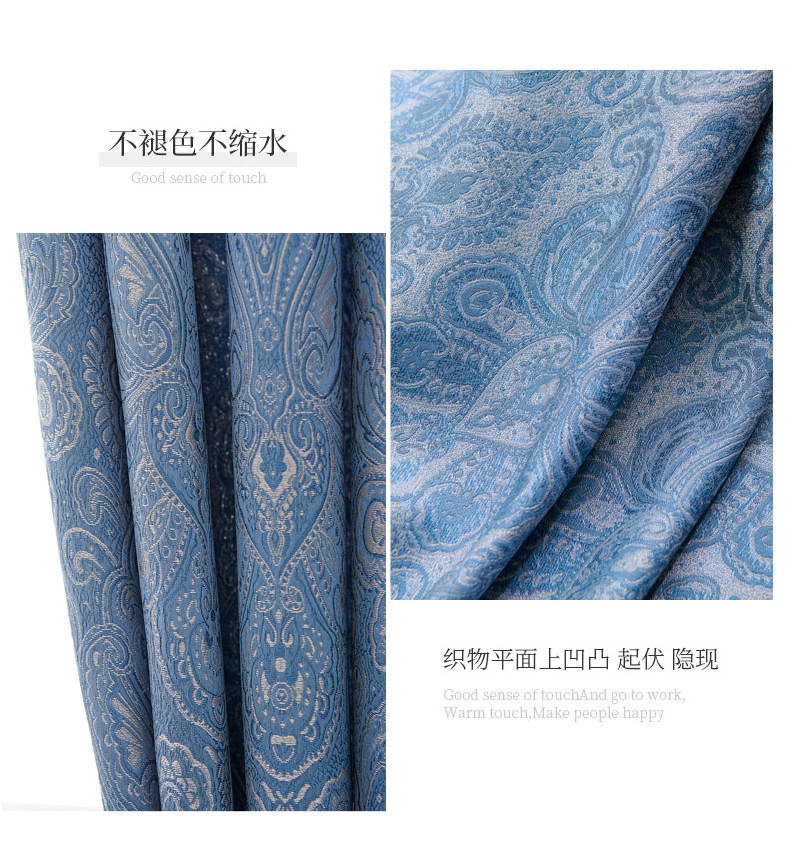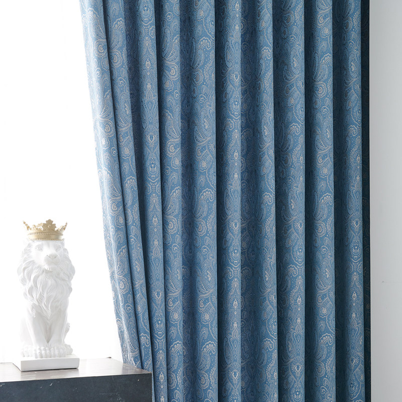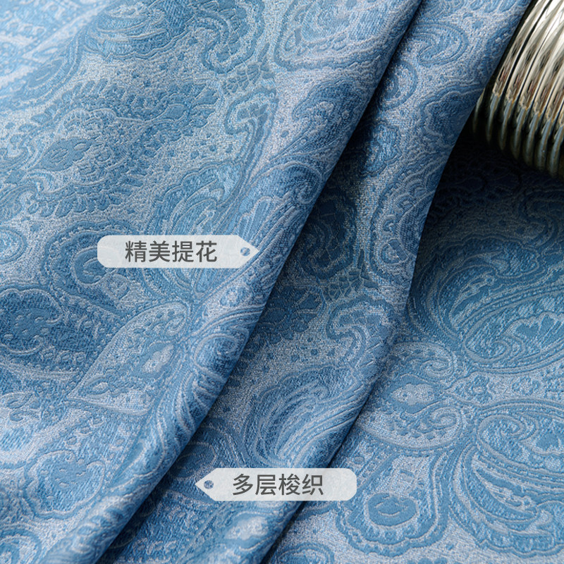 American light luxury style Nordic simple three-dimensional jacquard 2021 new blue living room bedroom blackout curtain customization