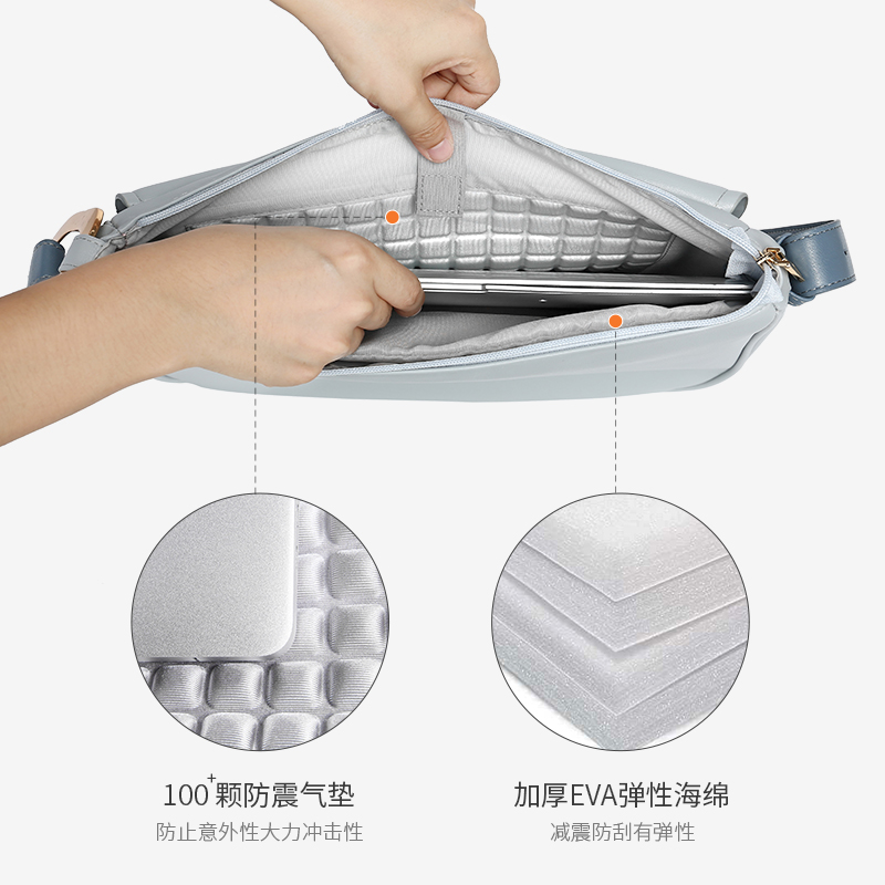 Single shoulder 13 3 Pen electric bag Girls apply Lenovo Little New Apple mac Huawei matebook14air Xiaomi pro inch Oblique Span Light minimalist Little crowdlooking cortical light blue