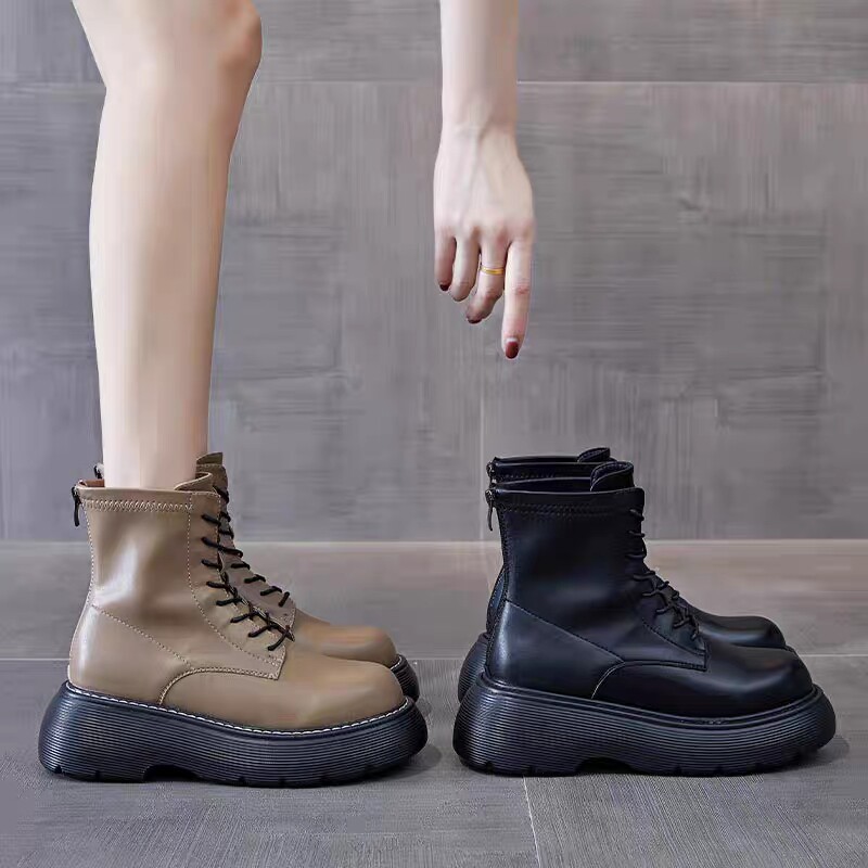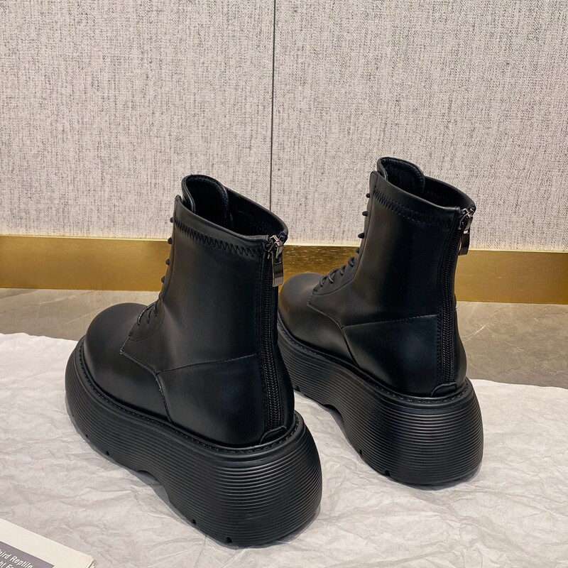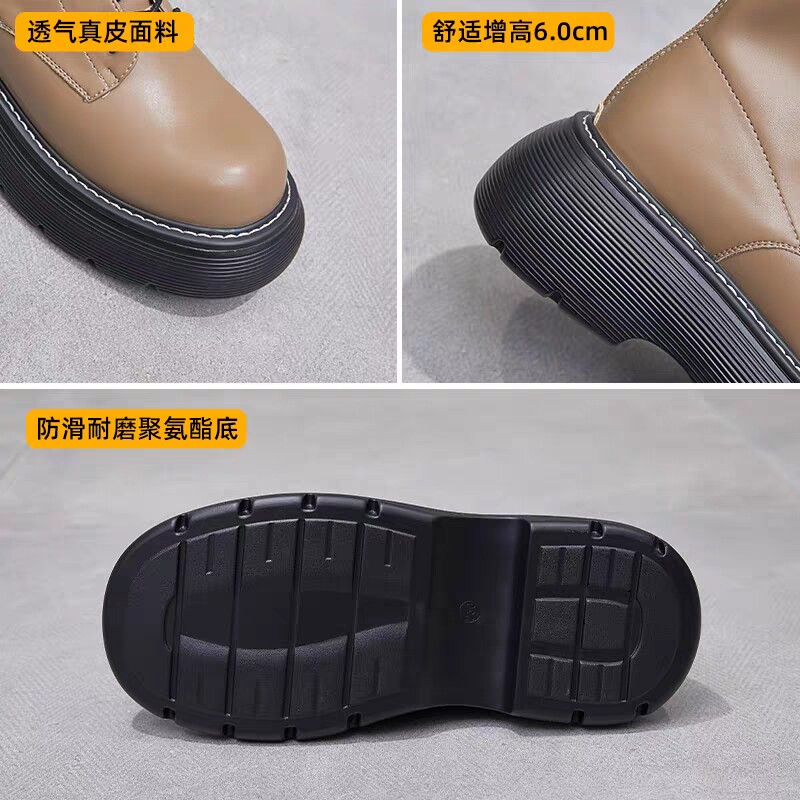 Tide brand leather Martin boots women's 2022 autumn and winter new British style retro short boots increased height thick bottom big head motorcycle boots