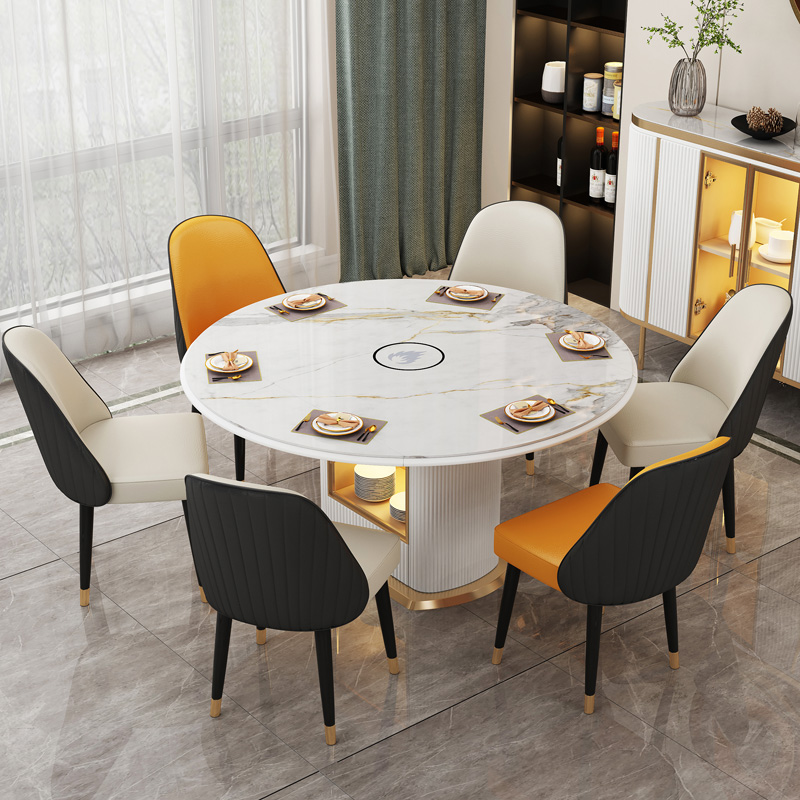 Light luxury dining table rock slab folding household small apartment modern minimalist telescopic induction cooker round rectangular dining table