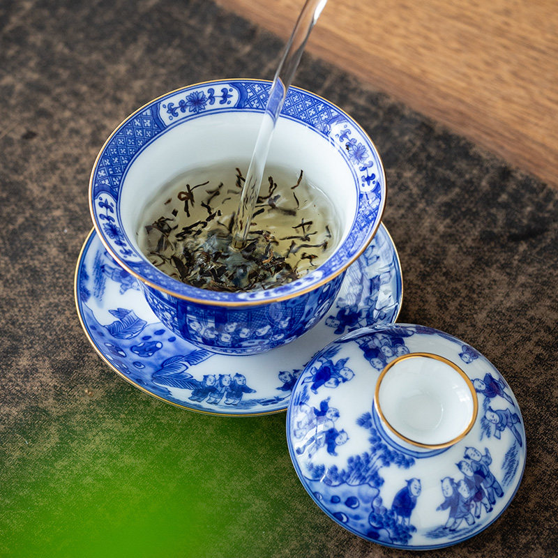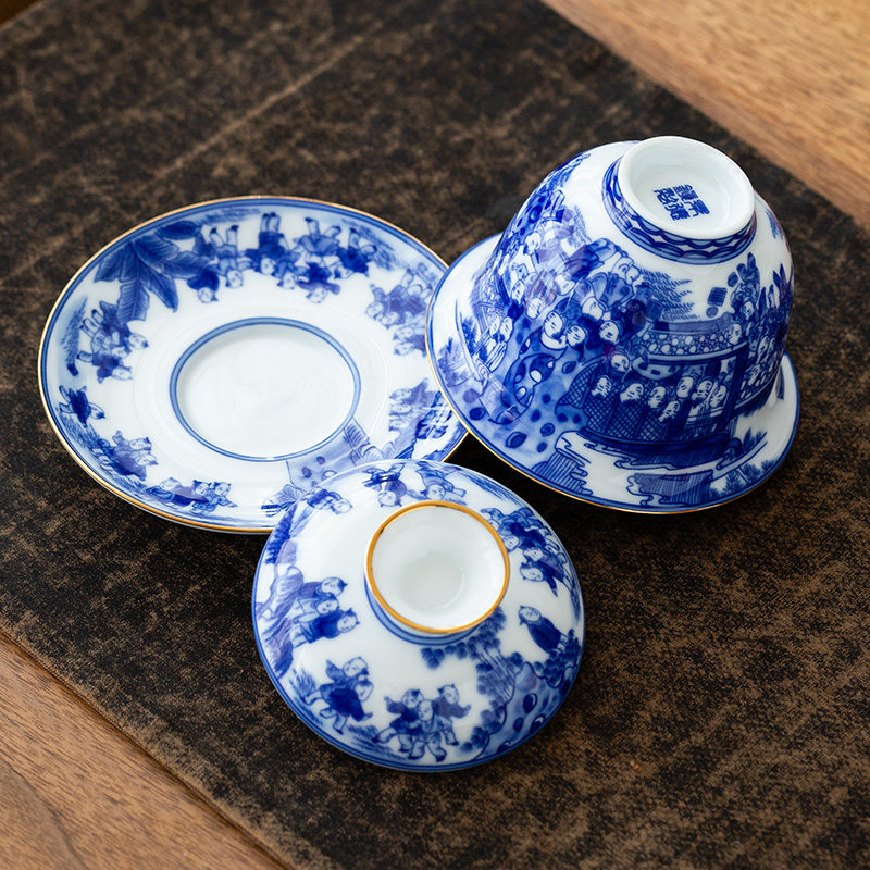 Green Flower Lid Bowl (Eight Treasure) Qingzao lid bowl (100 subplot) green flower cover bowl (horse to success)