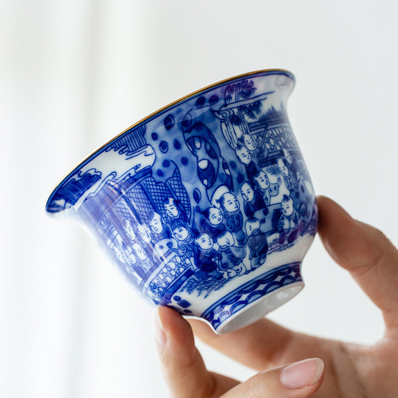 Retro hand painted Jingdezhen Qinghua Master's cup ceramic glazed Colored Tea Cylinder Cup Personal Special Qigong Tea Cup-Taobao