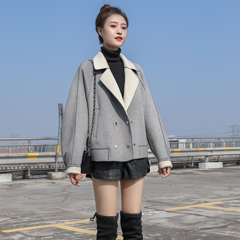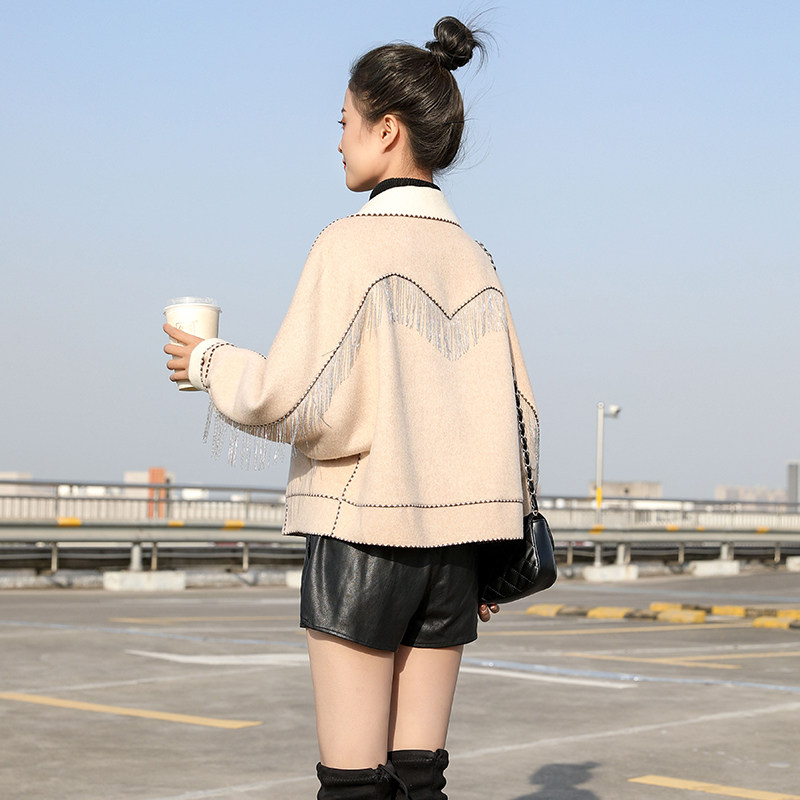 High end double face cashmere big coat female short 2021 autumn Winter new Korean version Herbenwind small fur Fur Coats