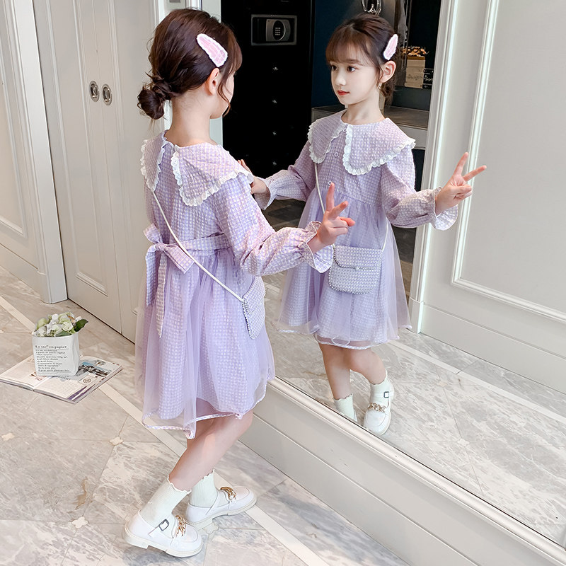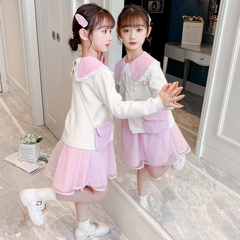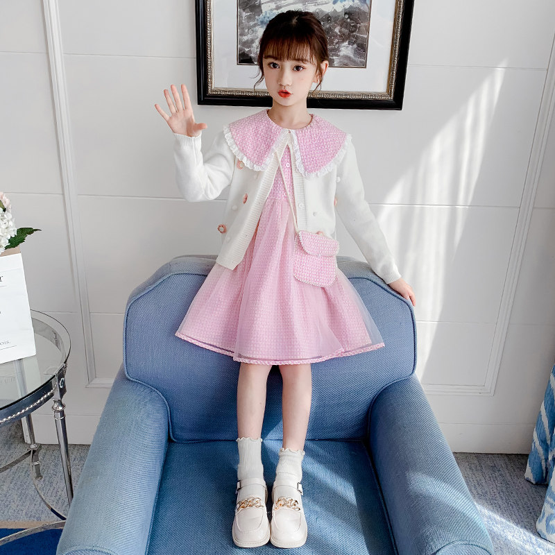 Girls Spring and Autumn Dress Western Style Suit Skirt 2022 New Korean Children's Autumn Net Red Dress Little Girl Tide