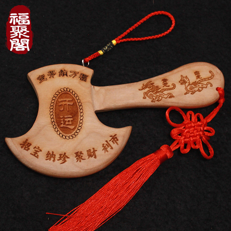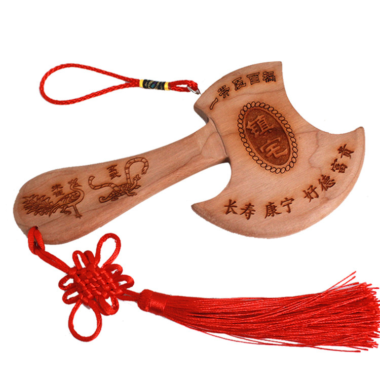 Peach wood axe pendant axe all-in-one unpainted log pendant town house baby marriage sitting Fu wood carving moving housewarming