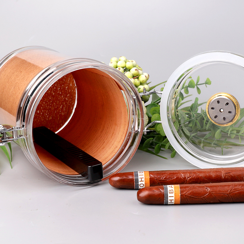 Wood Incense Smoking Bucket Moisturizing Tank Men's Tobacco Cigarettes Special Jars Cigar Insulation Case Snowpine Wood With Thermometer