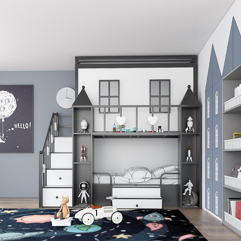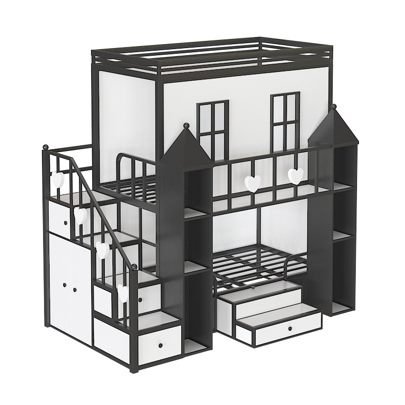 High End Iron Art High Shelf Bed Upper lower empty loft province Space Lower Table Castle Elevated bed wardrobe bungaloo bungaloo bungaloo bungaloo