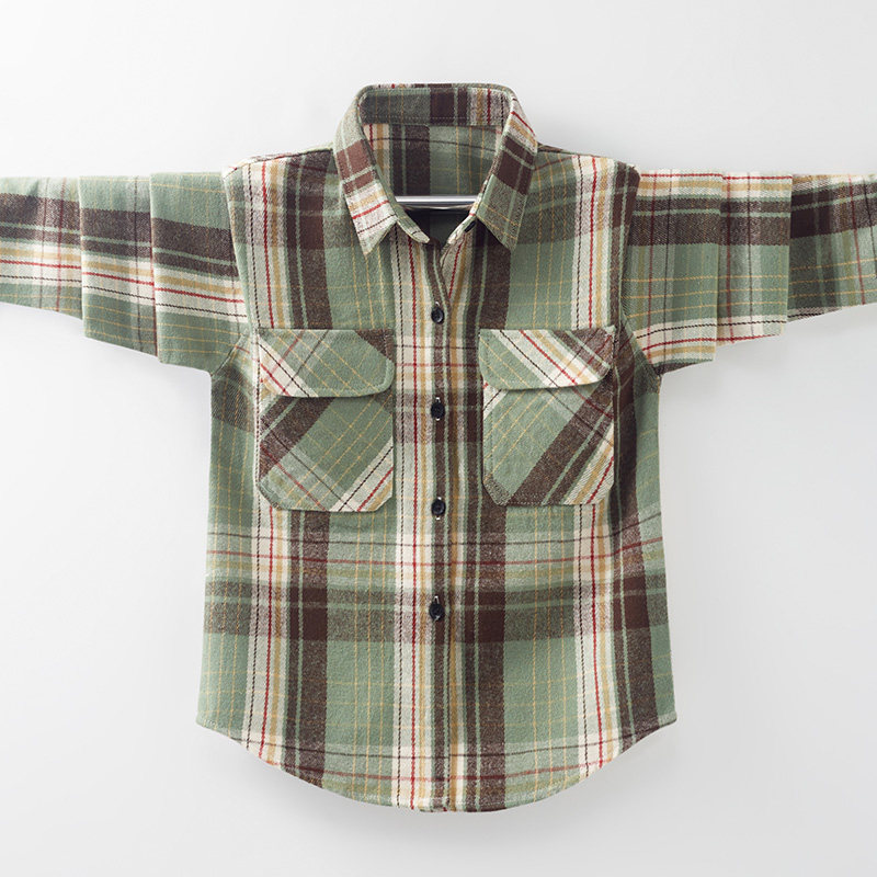 Boy Long Sleeve Shirt 2021 Spring Autumn New Blouses Big Boy Pure Cotton Plaid Boy Shirt Ocean Wave