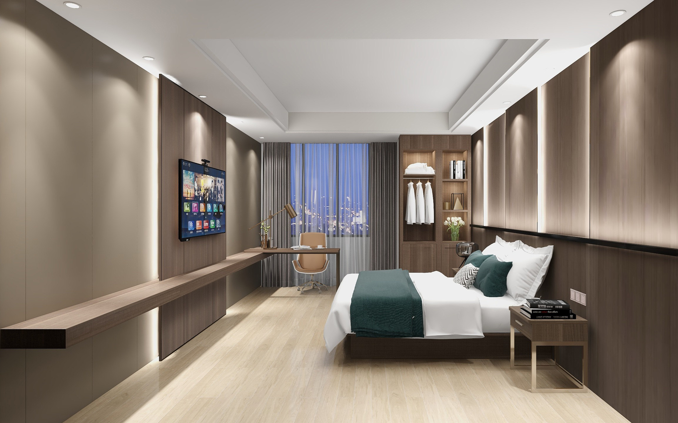 4 m floor hardbed relying on 1 2 m bed box 4 m floor hard bed leaning on 1 5 m bed box 4 m floor hard bed leaning on 1 8 m bed box 4 m wall decorated with panel bed head cabinet TV table TV frame
