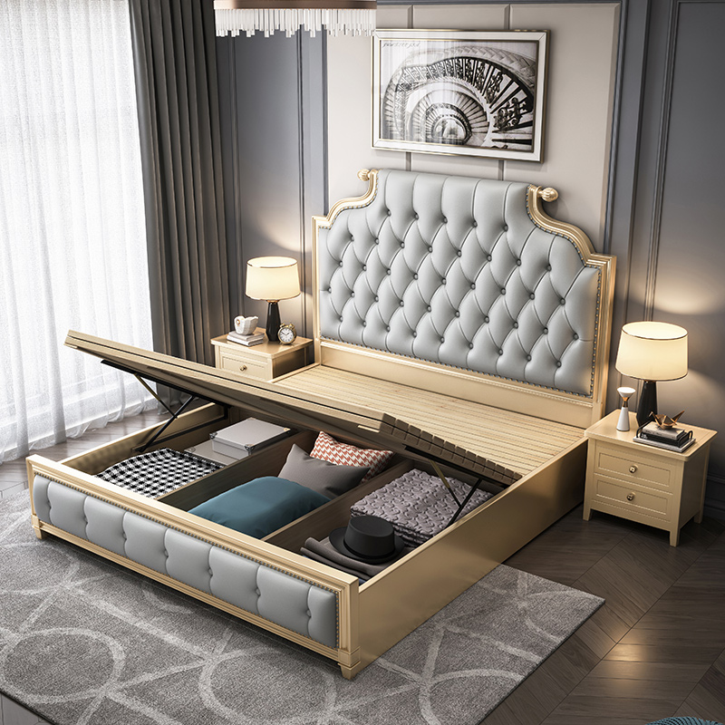 American solid wood bed light luxury modern simple master bedroom European wedding big bed French princess bed soft bag storage bed