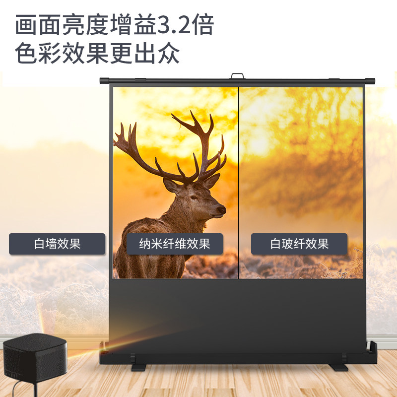 Outdoor projection floor pull screen 80 92 100 inch floor screen HD anti-light home mobile portable screen floor stand free punching outdoor suitable for XGIMI projector screen