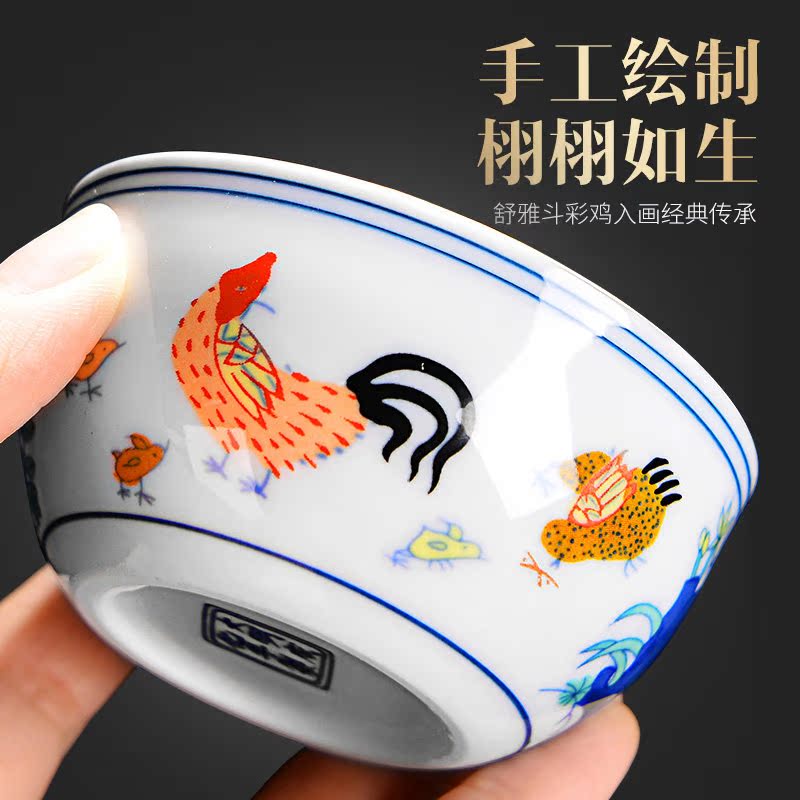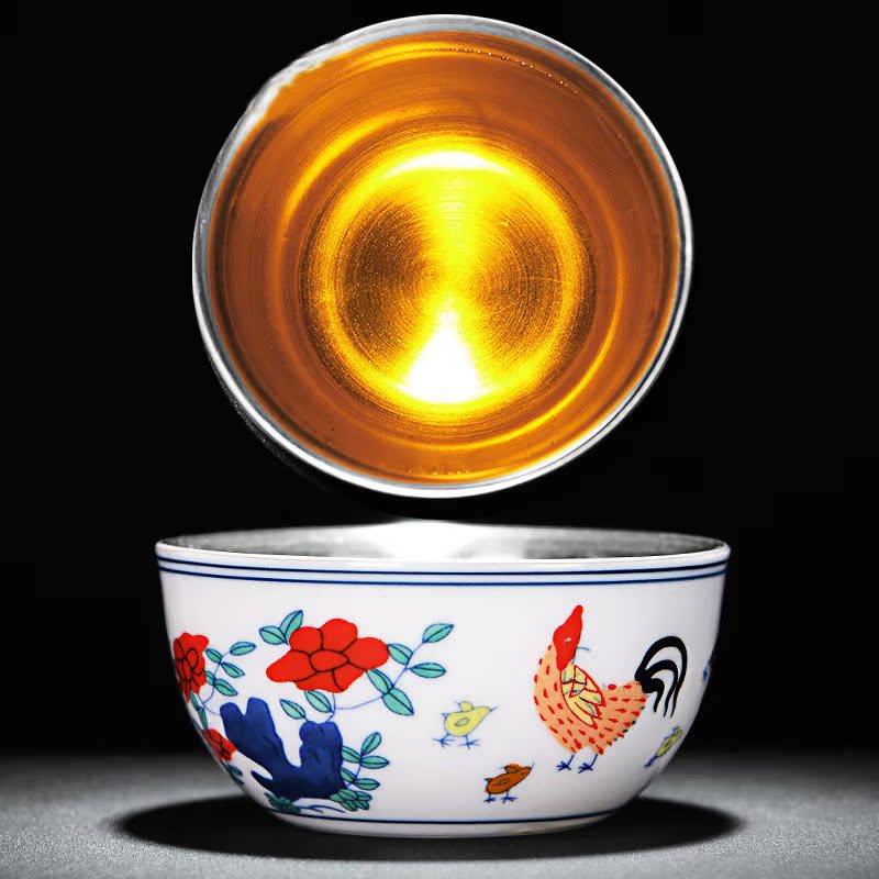 Gilt silver-blue and white Doucai Chicken Pot Cup (single) gilt silver-blue and white Doucai chicken tank Cup (6)