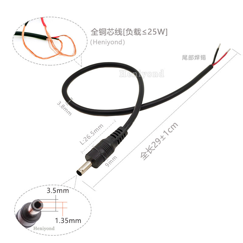 Pure copper power supply DC head 3 5-1 35mm male head connector wire plug DC power line connector round hole mouth