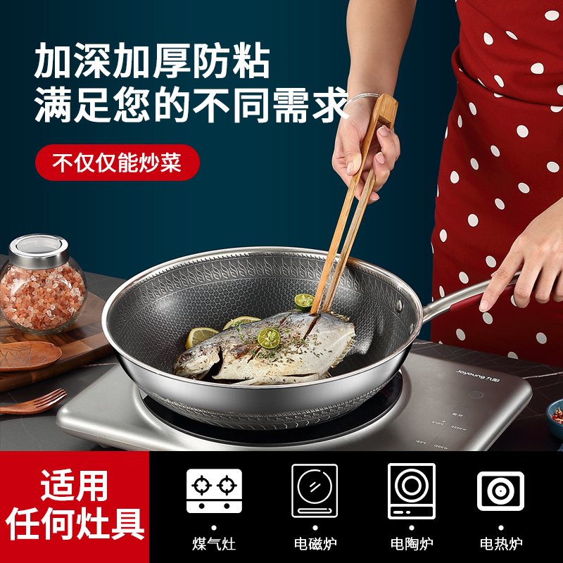 304 stainless steel household frying pan uncoated honeycomb non-stick pan antibacterial frying pan induction cooker gas stove universal