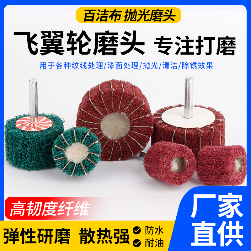 White Cloth Grinding Head 6mm Shank Nylon Grinding Head Deburring Fiber Polished Rust Removing Flying Wing Stainless Steel Wire Drawing Wheel