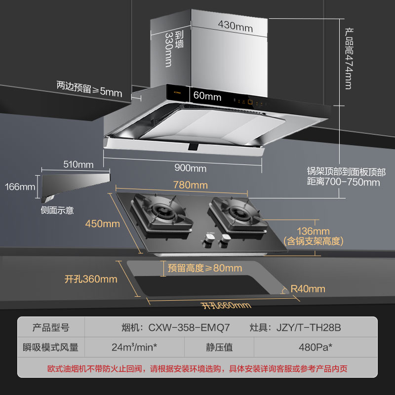 Fontaise EMQ7 TH28 31B 31B range hood gas stove Smoke Oven Package range hood Cooker Suit Official Flagship EMQ5