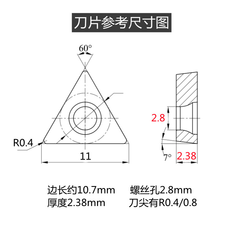 Metal ceramic numerical control lathe inner hole blade triangular single-sided fine car hard alloy knife grain TCMT110204