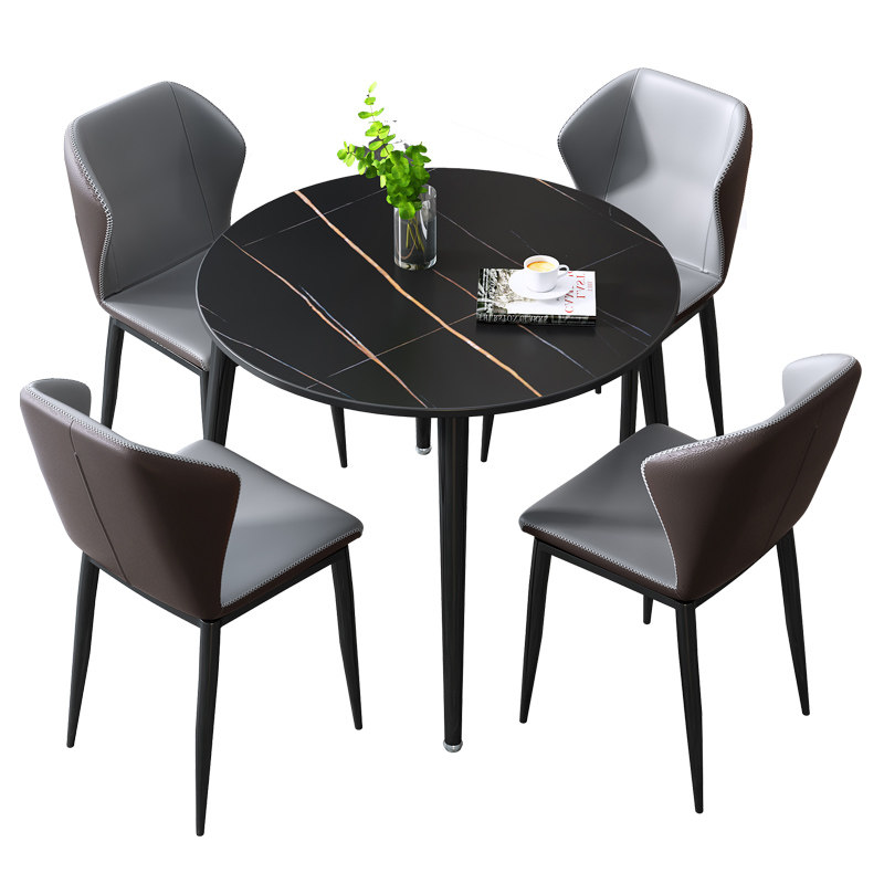 (Rock board table top) 80cm gray round table light gray 4 chairs thickened rock board table top damaged (rock board table top) 80cm white square table dark gray 4 chairs (rock board table top) 80cm