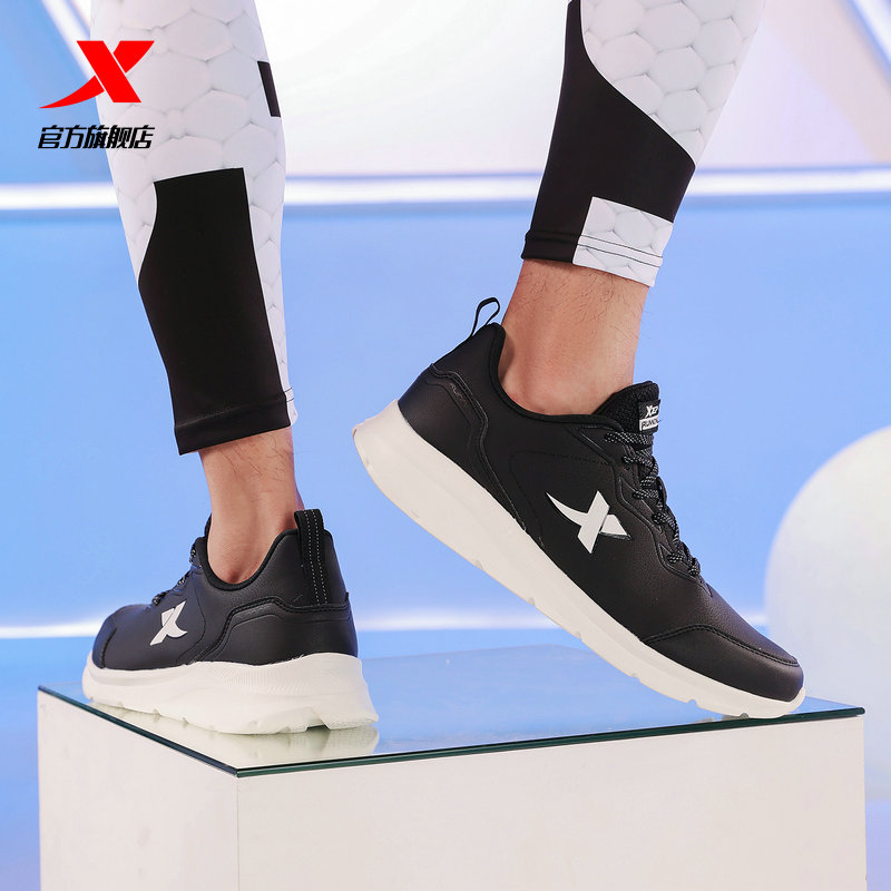 Xtep Official Running Shoes Men's Autumn Leather Surface Waterproof Running Shoes Soft Sole Lightweight Casual Shoes Shock Absorbing Shoes Sports Shoes