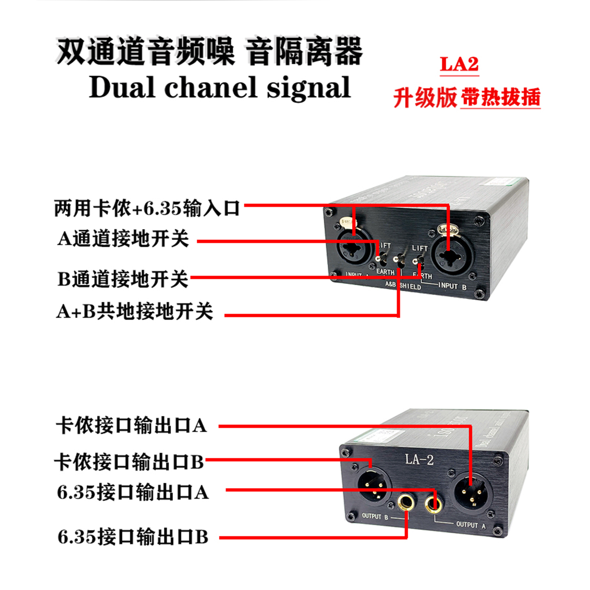 Professional LA2 Audio Isolator Noise Reduction Filter Eliminates Current Acoustic Noise 6.5 Cannon Mixer Microphone Port