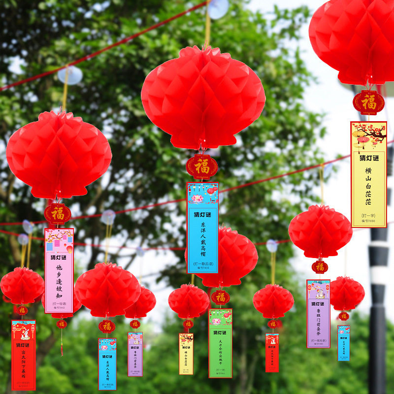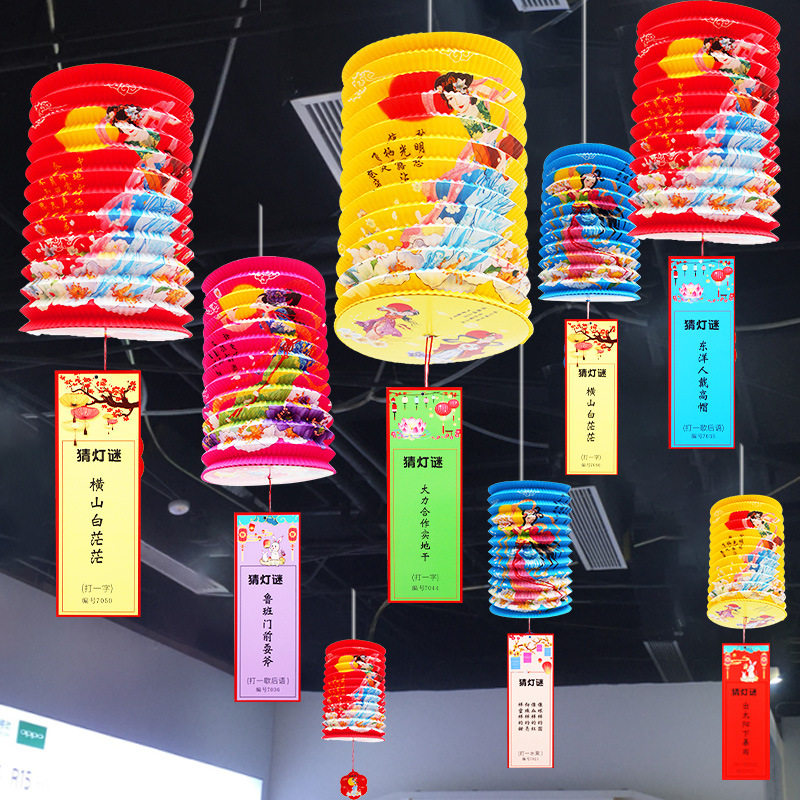 Middle Autumn National Day Paper Lantern Riddle Decoration Guessing Lantern Riddle Props Mall Active Atmosphere Scene Arrangement Flower Lantern Riddles Riddles