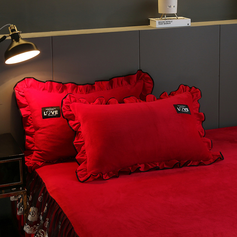Thickened milk suede-large red pillowcase pair thickened milk suede-ink green pillowcase pair of thickened milk suede pillowcase pair of thickened milk suede-grey pillowcase pair thickened milk suede-Meired pillowcase One