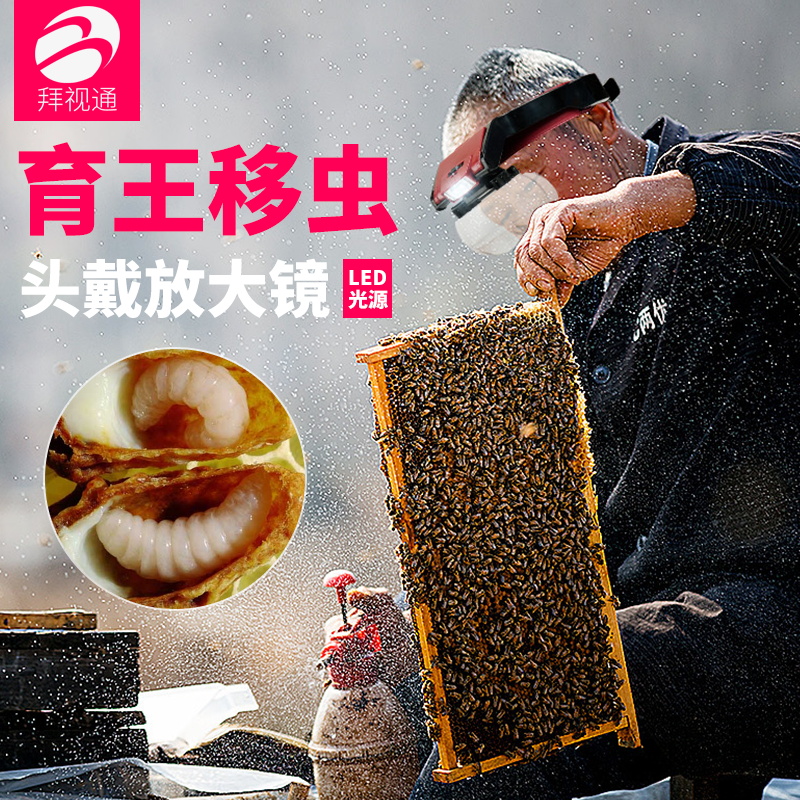 Bai Shitong beekeeping beekeeping insects magnifying lens wearable with light led old people year high-definition children students reading newspaper glasses embroidery repair mobile phone clocks to blackheads optical portable