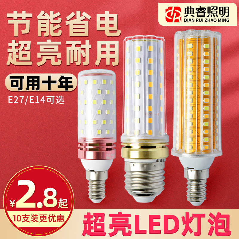 The light bulb e27e14 screw LED energy - saving lamp household ultra - bright chandelier candle light source tricolor light thread
