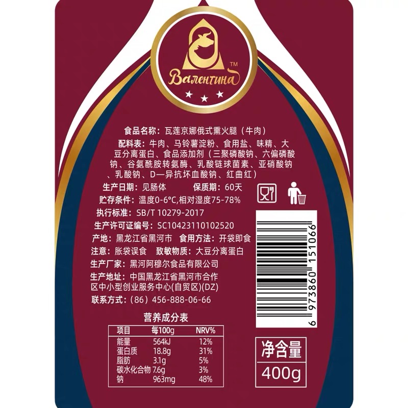Russian sausage pure beef sausage flavor ready-to-eat non-original imported Russian Valentina bacon black pepper ham