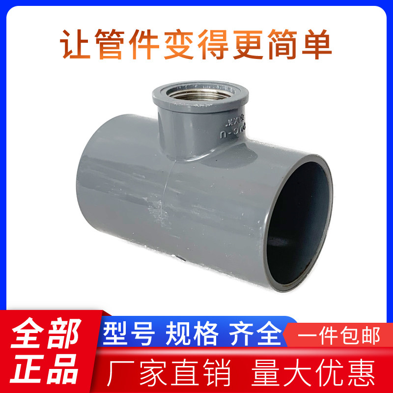 PVC water pipe internal wire three-way change diameter internal wire threaded pressure three-way connector 50 63 4 6 points 1 inch 2 inch accessory