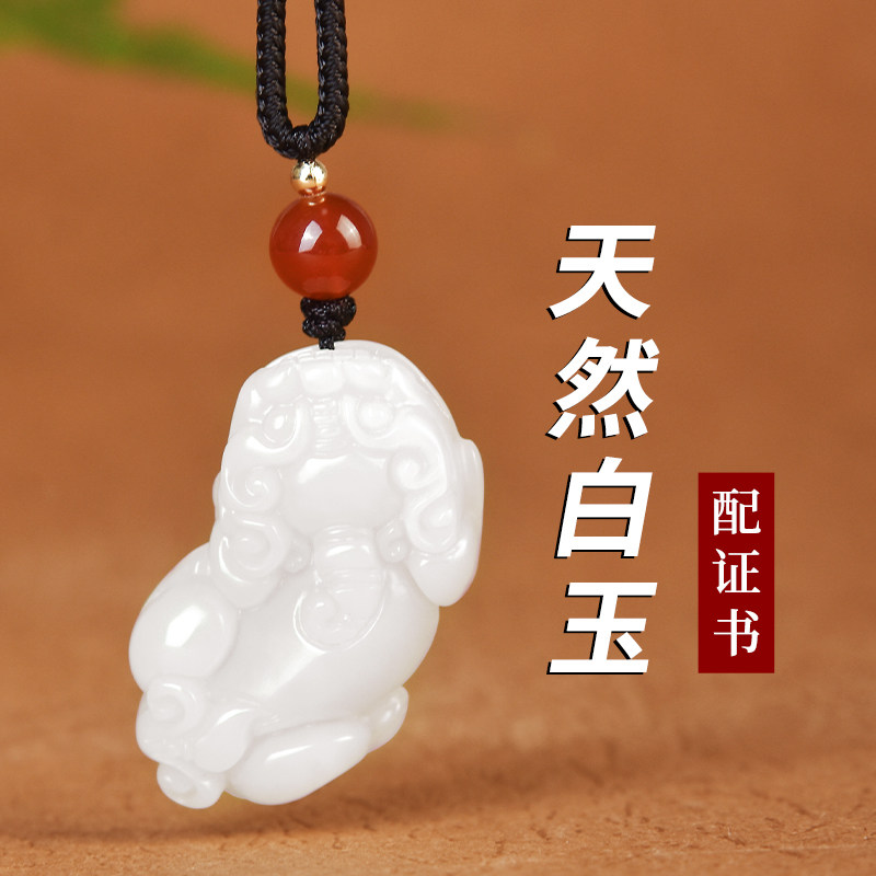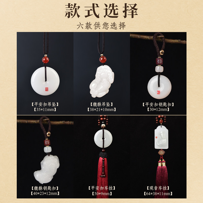 Natural white jade safety buckle (pendant)-with certificate natural white jade brave (pendant)-with certificate natural white jade safety buckle (car pendant)-with certificate natural white jade Guanyin (car pendant)