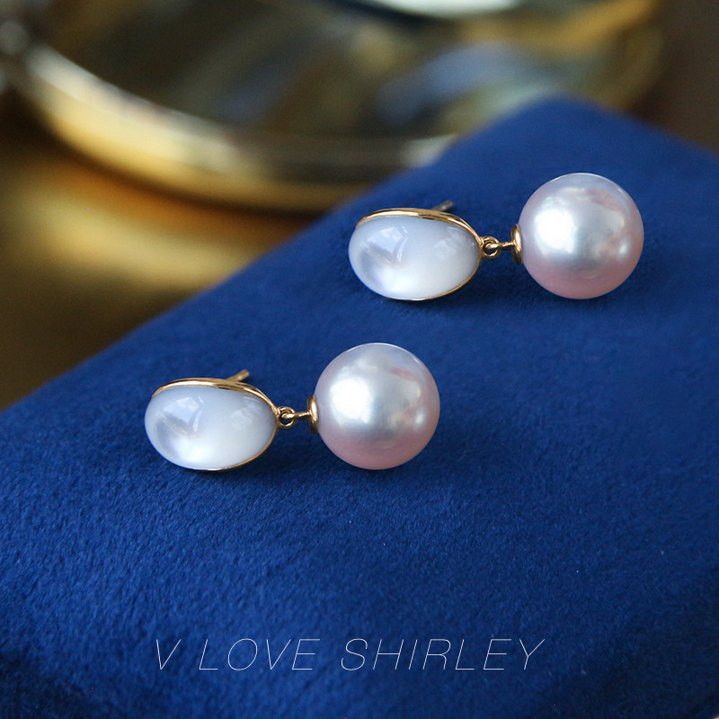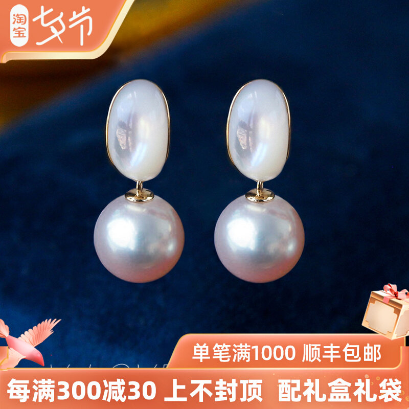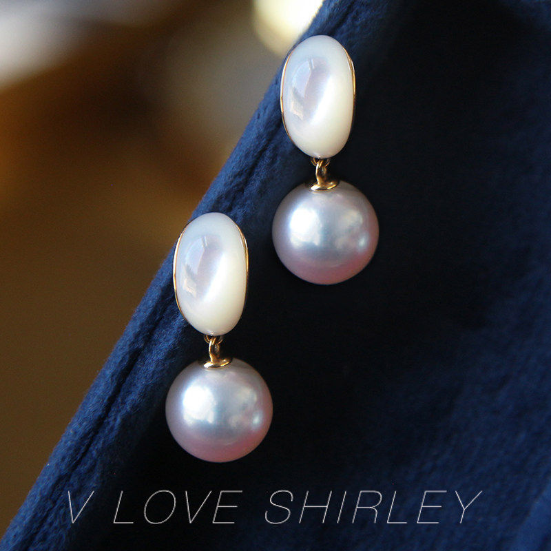 "Palace" Japan imports akoya sea water pearl earrings 18K gold Sichuan fritillary earrings name Yuanyuan Palace Wind Ear Needles